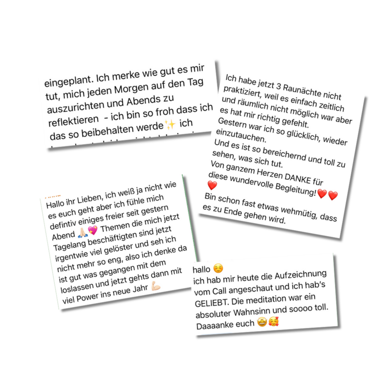 - Dein persönlicher Rauhnächte-Podcast: Alle Impulse für die Jahresreflexion und die Visualisierungen werden auch als Audio zur Verfügung gestellt.